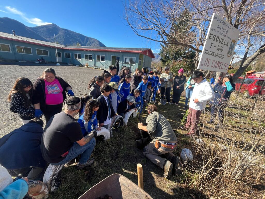 La Escuela Volcán Antuco de Villa Los Canelos, comuna de Antuco se sumó gracias a las gestiones de Eco-Cóndores de Abanico y la Asociación Indígena Newentuche. Por una parte, la comunidad estaba interesada en “ornamentar” su entorno con plantas nativas y por otra, estar más preparados para épocas de sequía.